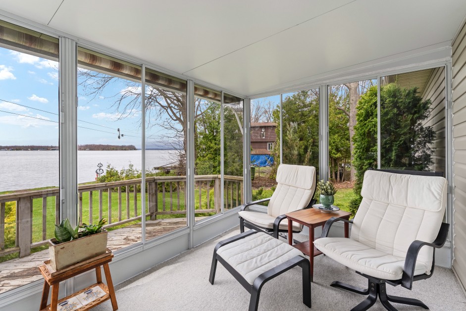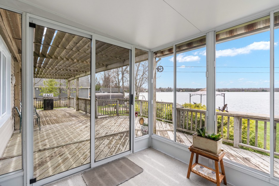 This warm and welcoming year-round ranch bungalow offers 2,340 sq. ft. of thoughtfully designed living space, perfectly situated on a level and spacious 0.91-acre lot with 109± feet of shoreline on sheltered McPhee Bay, Lake Simcoe. Just 10 minutes from Orillia and all amenities, this property blends comfort, functionality, and waterfront lifestyle in one incredible package. Inside, the open-concept layout is bright and airy, ideal for both everyday living and entertaining. You'll find 3 bedrooms, 2 full bathrooms and a inviting bright kitchen that features granite countertops, oversized windows and a seamless flow into the dining and living areas, where a cozy gas fireplace anchors the space. Multiple walkouts and covered porches bring the outdoors in, and nearly every room offers stunning views across the lake. A walkout from the main living area leads to a peaceful three-season sunroom—perfect for enjoying nature in comfort throughout the year. Practicality meets charm with an attached double garage offering interior access through a spacious mudroom/laundry area. Outdoors, the possibilities are endless. The beautifully maintained lot includes a private tennis/pickleball court, ample parking and a newer waterfront retaining wall and decking—ideal for relaxing or launching lake adventures. A detached, heated 1,285 sq. ft. shop with in-floor heating and lake views is a true bonus for hobbyists, professionals, or anyone in need of creative space. Updates Include: Granite countertops, triple-pane windows, roof, furnace, skylight, gas fireplace, hardwood flooring, hot water tank, generator, water treatment system and waterfront decking and retaining wall. Whether you're searching for a peaceful year-round home or a vibrant retreat to share with family and friends, this Lake Simcoe gem offers comfort, versatility, and an unbeatable waterfront setting.